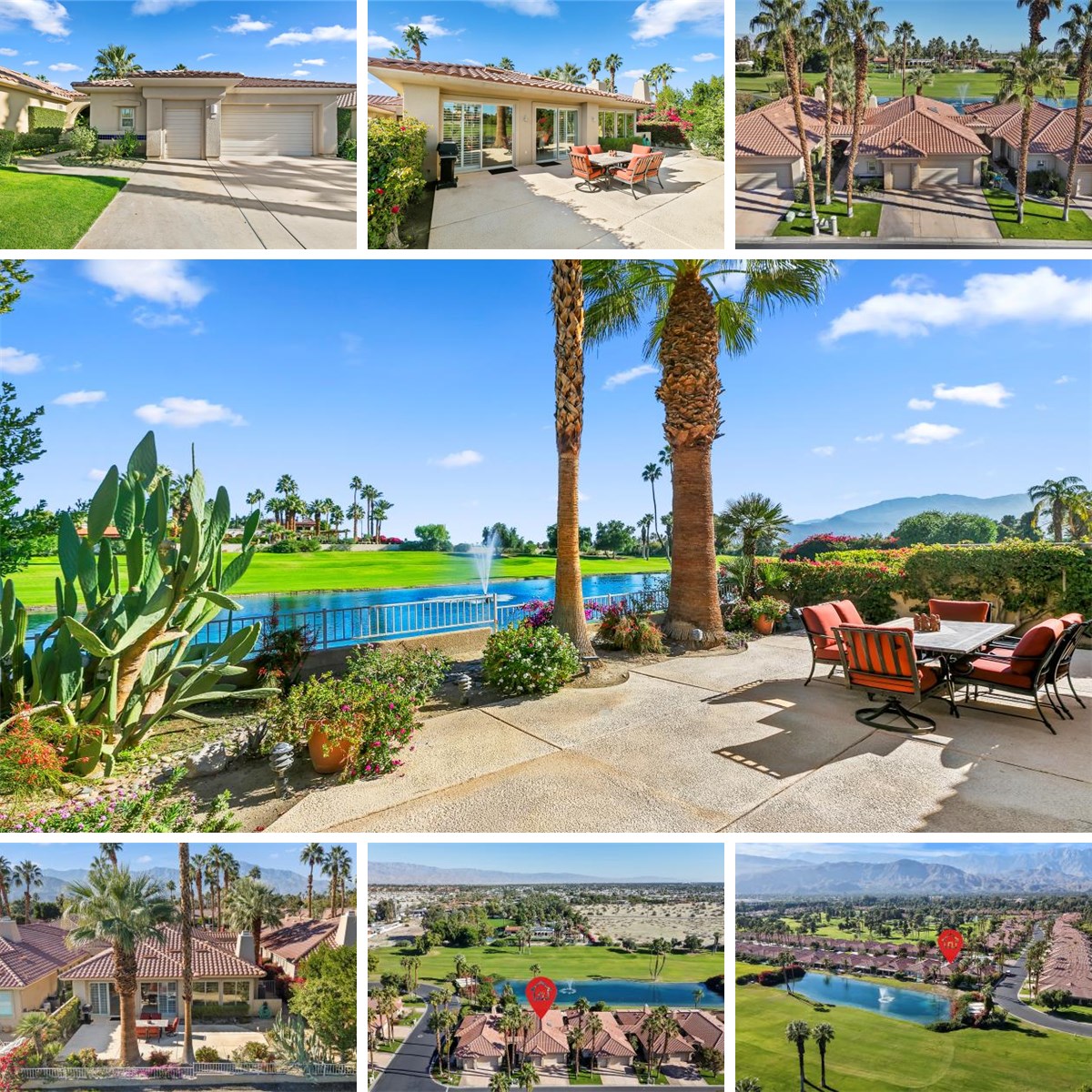Spectacular Views and Turnkey Furnished! This well-designed 3BR/3BA floor plan features an expansive master suite, attached guest suite w/private entrance, gourmet kitchen w/island, and 2 car + golf cart garage. This condo has the feel of a detached single-family home (no common walls). The home has been well-maintained, with the dual zone HVAC units having been recently replaced. Furnishings, decorations and accessories are included – even the golf cart! HOA dues are a fantastic value too, covering front yard landscaping, structural and roof maintenance, earthquake insurance, common area maintenance, exterior pest control, 24-hour guarded gate, cable TV & internet, and 4 heated pools/spas (the home is conveniently located adjacent to one of these pool areas). The views from the spacious patio are unparalleled and include golf course, water and mountain vistas. Following recent challenges with its golf course, Rancho Mirage Country Club is being rejuvenated – a 10-hole golf course is now available to homeowners and their guests for a nominal annual fee. Rancho Mirage Country Club is nestled in the heart of Rancho Mirage, between the new Cotino (Disney) community and Eisenhower Medical Center - only minutes from upscale shopping, dining and entertainment. This home is priced to sell! Come and tour this beautiful property today!